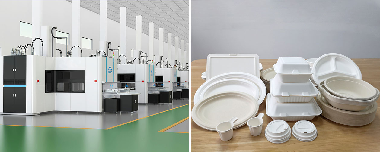 浙江歐亞聯(lián)合裝備集團有限公司 / 浙江歐亞輕工裝備制造有限公司(EAMC),長期專業(yè)從事國際先進EAMC全自動紙漿模塑生產(chǎn)設(shè)備、紙漿模塑餐具生產(chǎn)設(shè)備、紙漿模塑杯蓋生產(chǎn)設(shè)備和精致紙漿模塑工業(yè)包裝制品生產(chǎn)設(shè)備-全自動紙漿模塑成型定型切邊一體機的研發(fā)、生產(chǎn)、成套和各種植物纖維模塑(紙漿模塑)制品的開發(fā)和生產(chǎn),歐亞輕工是浙江省"專精特新企業(yè)"。在紙漿模塑制品及紙漿模塑成型模具的研究和開發(fā)領(lǐng)域有豐富的經(jīng)驗,利用可再生的植物資源如麥草、蘆葦、甘蔗渣等植物纖維,經(jīng)過模塑的方法,生產(chǎn)各種纖維日用品、纖維紙模餐具、纖維紙模托盤、纖維紙模工業(yè)品防震墊和包裝托盤、非平面的纖維紙模裝飾墻板以及非平面的纖維紙模立體制品。一體機設(shè)備獲得了省首臺套證書。