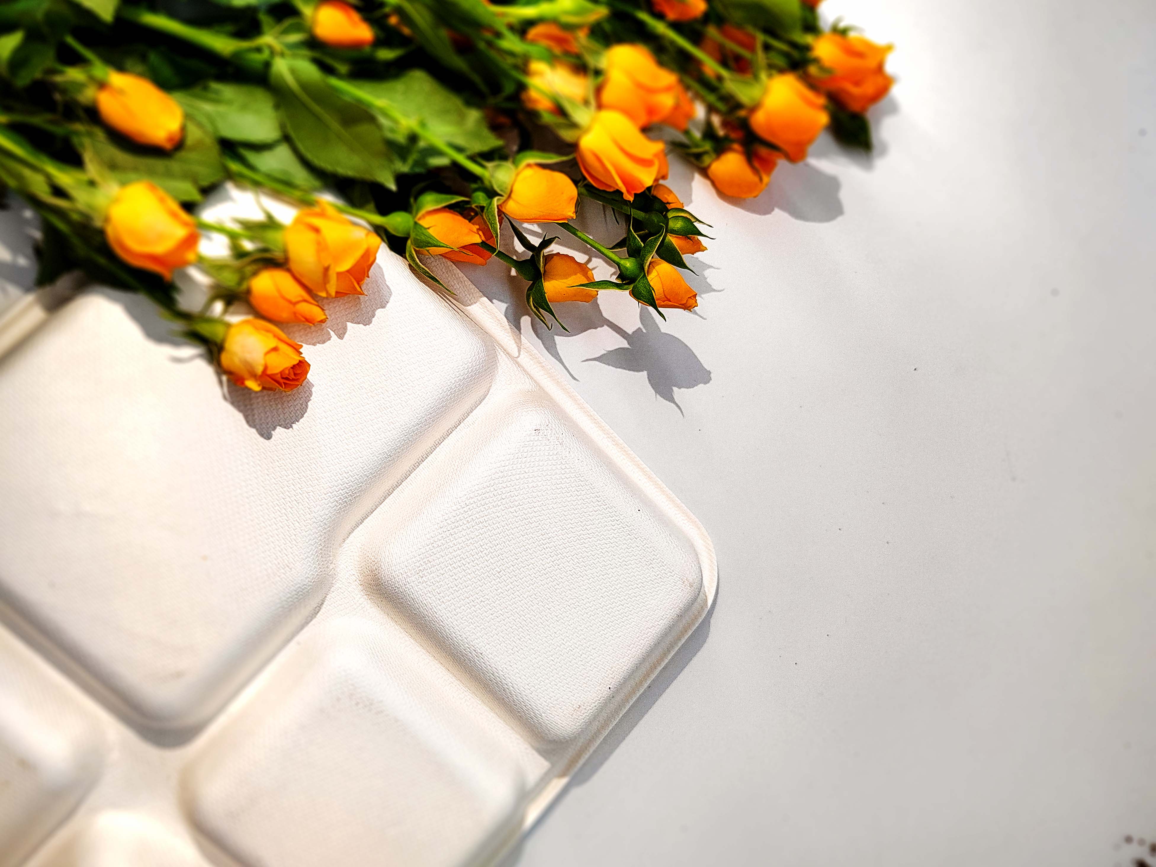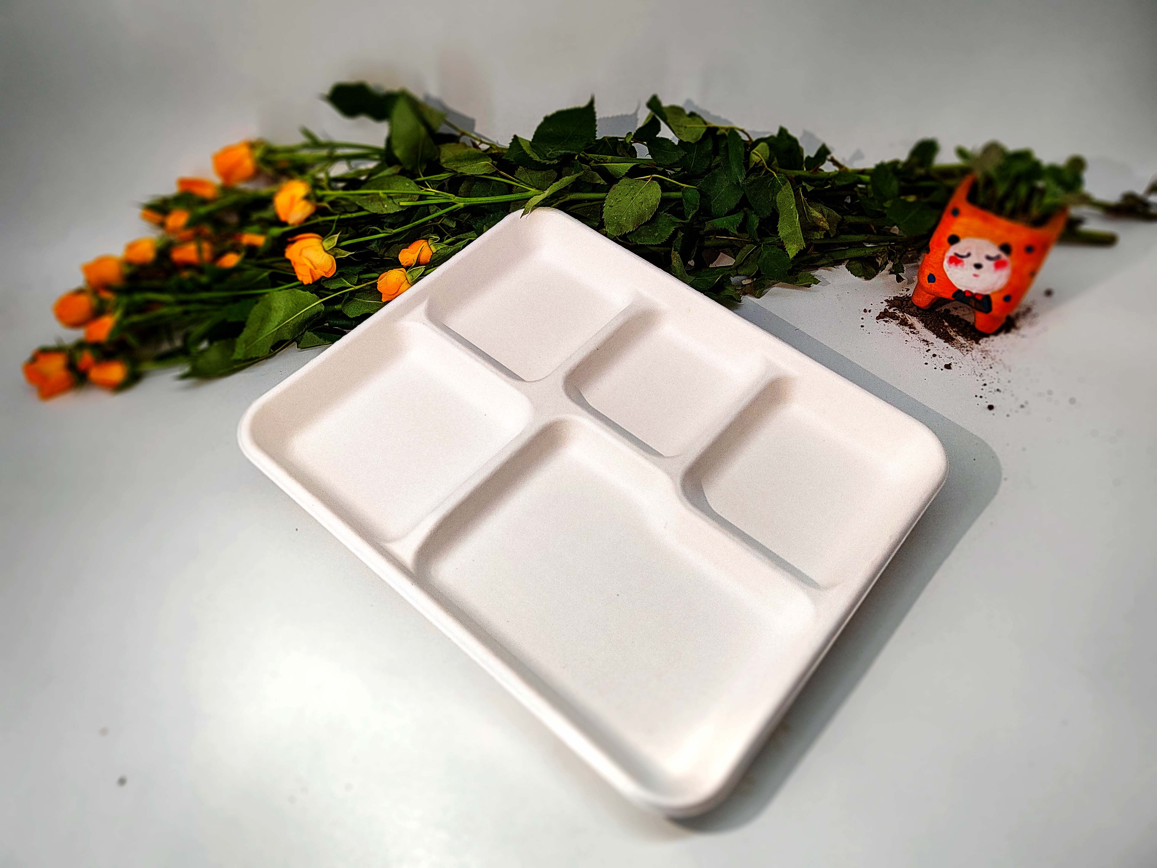 泰國(guó)工廠大量現(xiàn)貨供應(yīng):紙漿模塑餐具;5格盤 1,名稱:5格盤。