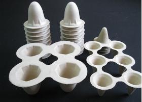 紙漿模塑也叫植物纖維模塑,就是用吸濾成型模具把漿液中的纖維制成濕坯,再把濕坯干燥定型的工藝過程。植物纖維在吸濾成型裝置中先經(jīng)過吸濾成型,制成制品的濕坯,把濕坯送入到加熱到一定溫度的熱壓模具內(nèi),熱壓模具合模并對濕坯進(jìn)行熱壓干燥定型,制成各種形狀的植物纖維模塑制品。紙漿模塑制品主要應(yīng)用于食品包裝也叫餐包領(lǐng)域、工業(yè)包裝領(lǐng)域也叫工包領(lǐng)域。紙漿模塑其工藝實(shí)質(zhì)是也一種立體造紙,其應(yīng)用領(lǐng)域不僅僅是餐包、工包所能概括的。比如:紙漿模塑立體壁紙屬于建筑裝簧領(lǐng)域,紙漿模塑牛塞羊塞屬于畜牧業(yè)領(lǐng)域,紙漿模塑衣架、紙漿模塑鞋襯屬于制衣制鞋領(lǐng)域等等,紙漿模塑制品跨越了行業(yè)界限。