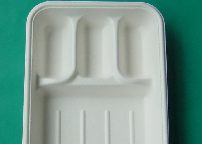 甘蔗渣纖維是中長纖維,具有強度適中、韌性適中的優(yōu)點,是目前來說最合適紙漿模塑制品的原料,因此甘蔗渣漿制品是目前適用范圍最為廣泛的。目前餐盒餐具類產(chǎn)品多使用甘蔗渣纖維,還有一些高端的手機托、化妝品包裝也有用這個原料。